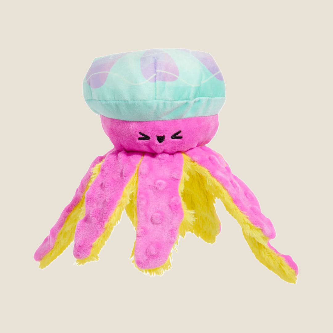 We hope your pup has been practicing their doggy paddle—because it’s time to seas the play! JellySquish is built for beach brawls with squeaks, flops, and crinkles galore.