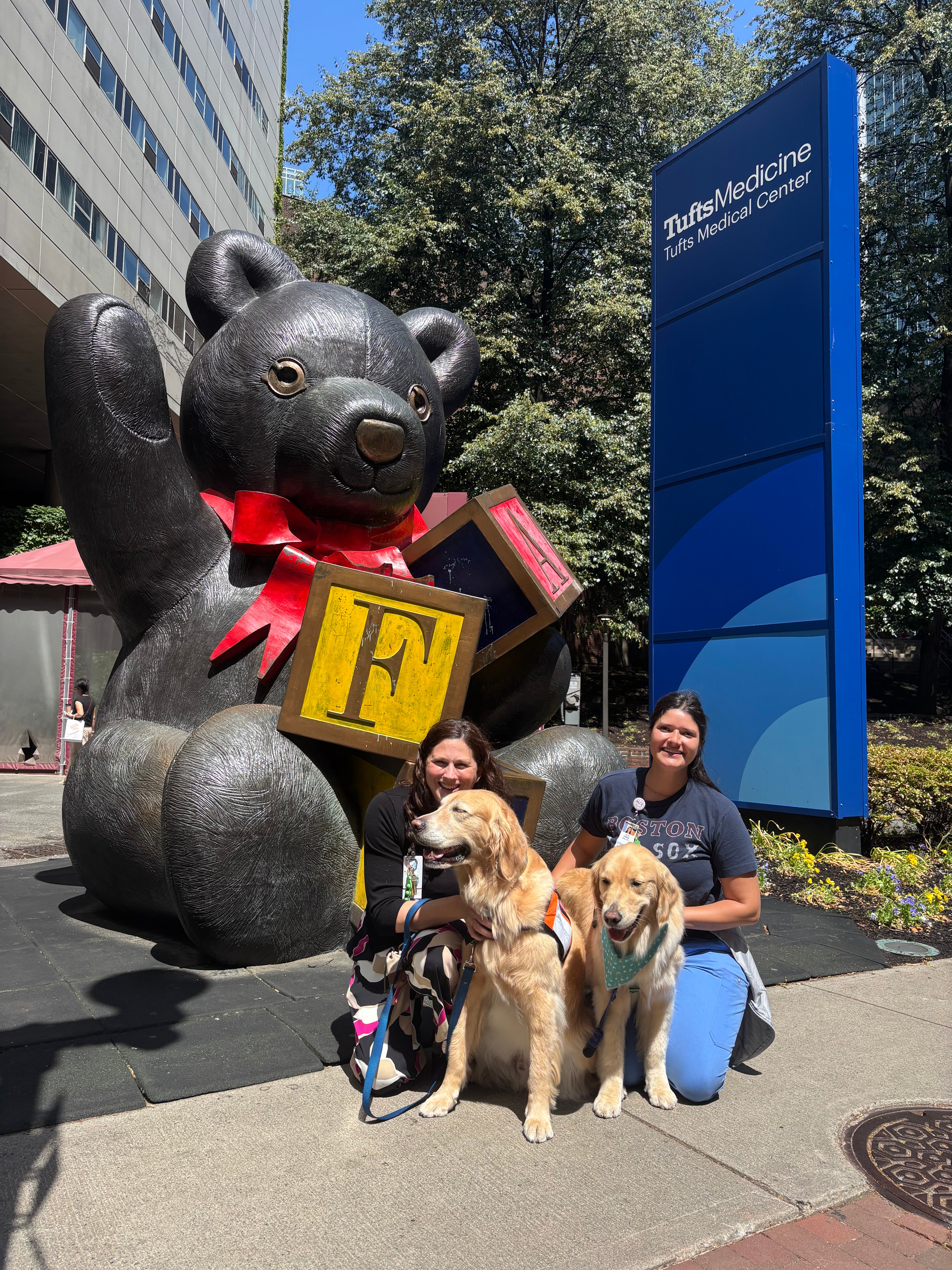 At Tufts, support sometimes comes with a wet nose and a wagging tail. Bob and Dottie play a powerful role, offering comfort and support when it’s needed most. Whether they’re helping a child through a tough procedure or simply brightening a hallway with their presence, these canine coworkers are an essential part of the Tufts care team.